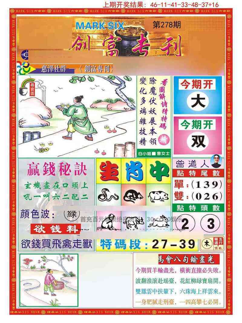 278期:正版创富网:今期生肖两角尖,夕料波深难着力